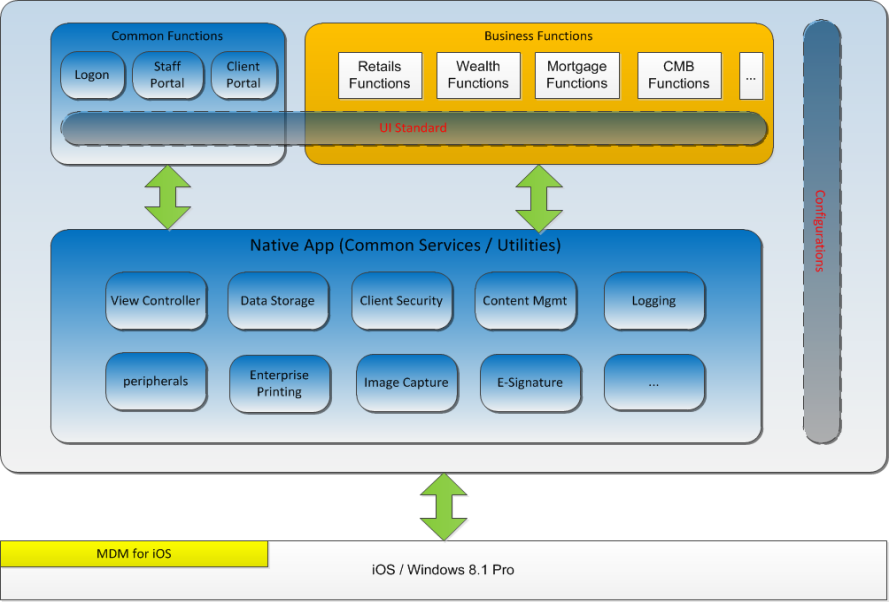The mobile platform for employees provides a consistent, expansible and configurable global solution for employee mobile applications. For mobile devices, SMP provides a unified touch programming interface to improve the reusability of services: employees get a unified touch experience when using different services, functional modules and applications. At the same time, it also provides off-line operation function, so that employees can carry out corresponding business without network. SMP is currently applied to different business situations within HSBC, including account opening, loan, insurance, wealth management, etc.